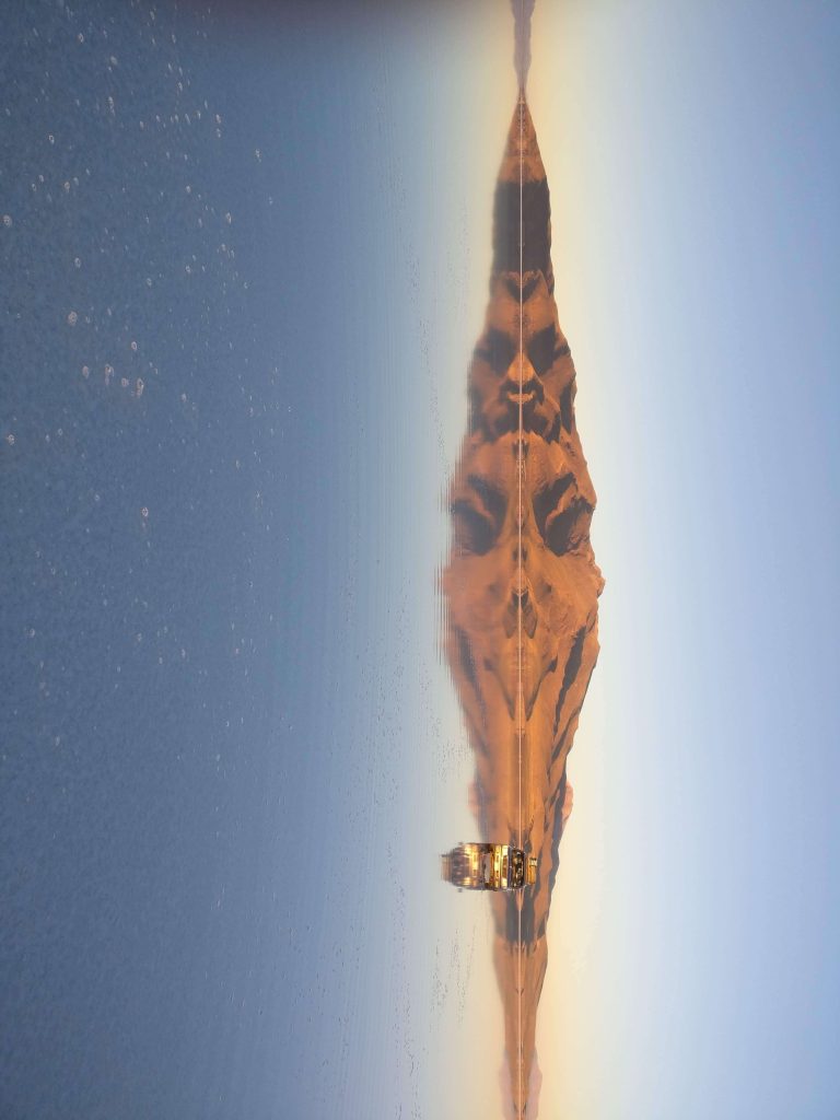 A magical and peaceful landscape where you can admire the reflection of orange cliffs of petrified lava and rocks in the black waters of the lagoon, lulled by the sound of the wind!